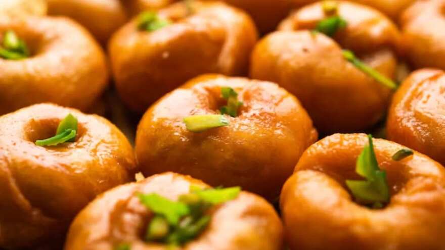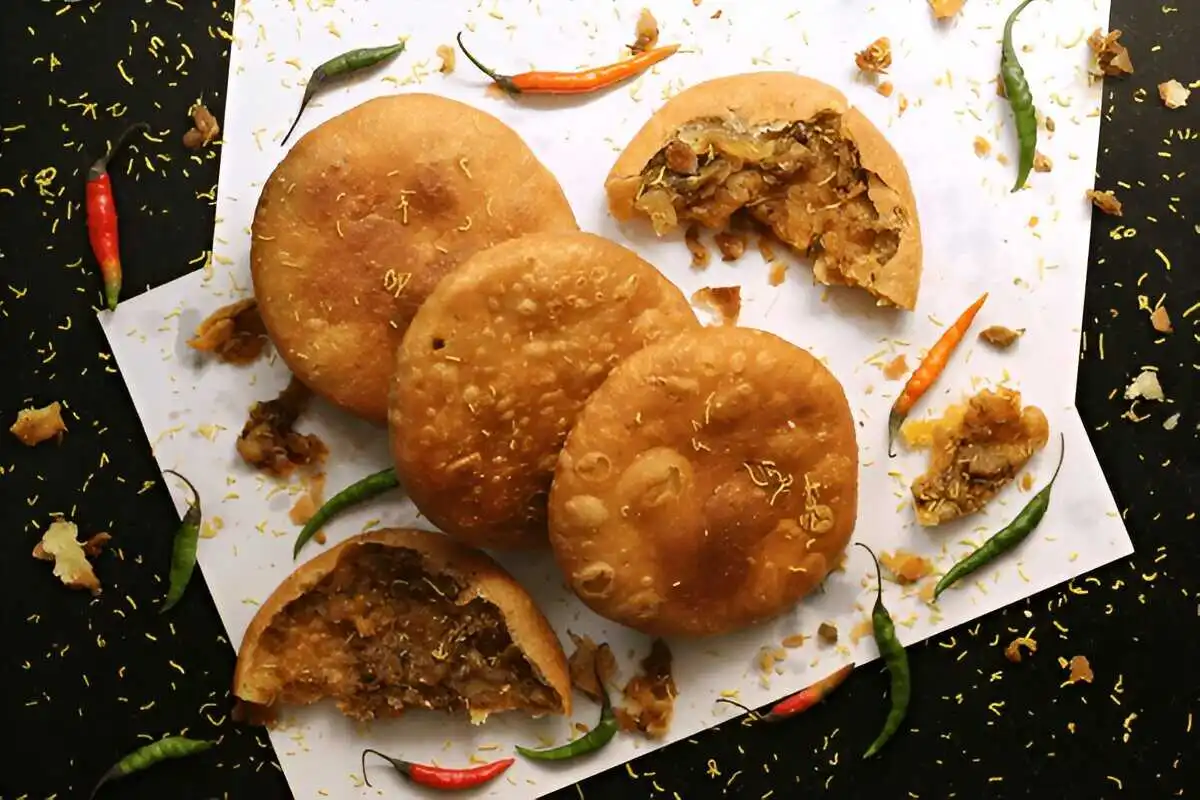A common breakfast snack from Rajasthan, pyaaz ki kachoris are yummy kachoris stuffed with onions, spices and garnished with chutneys and dahi.