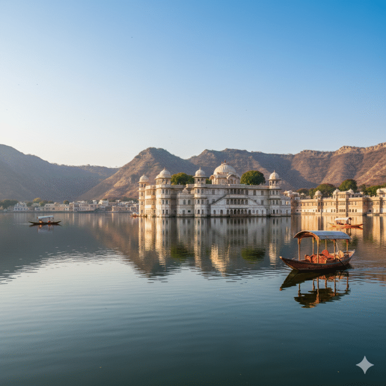 - Highlights: Panoramic views of the lake and Aravalli hills, charming courtyards, and beautiful fountains.